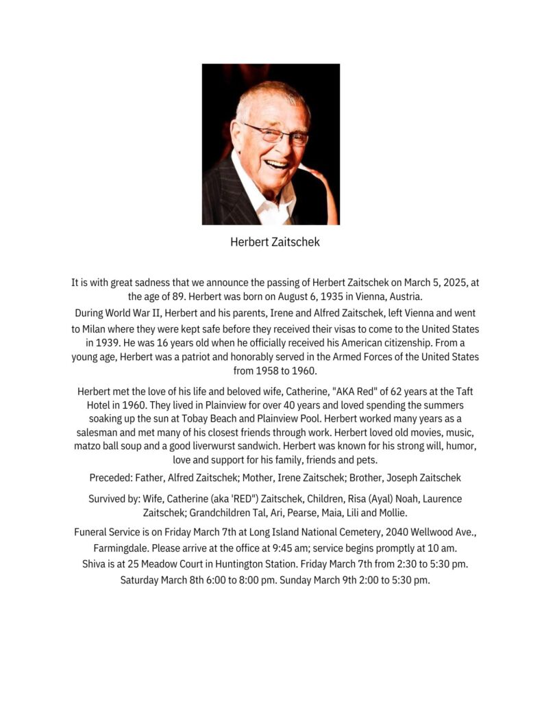 Graveside services will be held Friday March 7 at Long Island National Cemetery